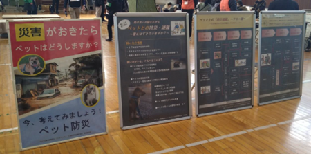 広島市在住の士会会員でありペット災害危機管理士1級の尾末謙太郎氏が「ペット同行避難」の啓発展示ブースを担当し、ペット同行避難パネル、ペット防災パネル、防災グッズ展示、避難準備アンケートを実施。