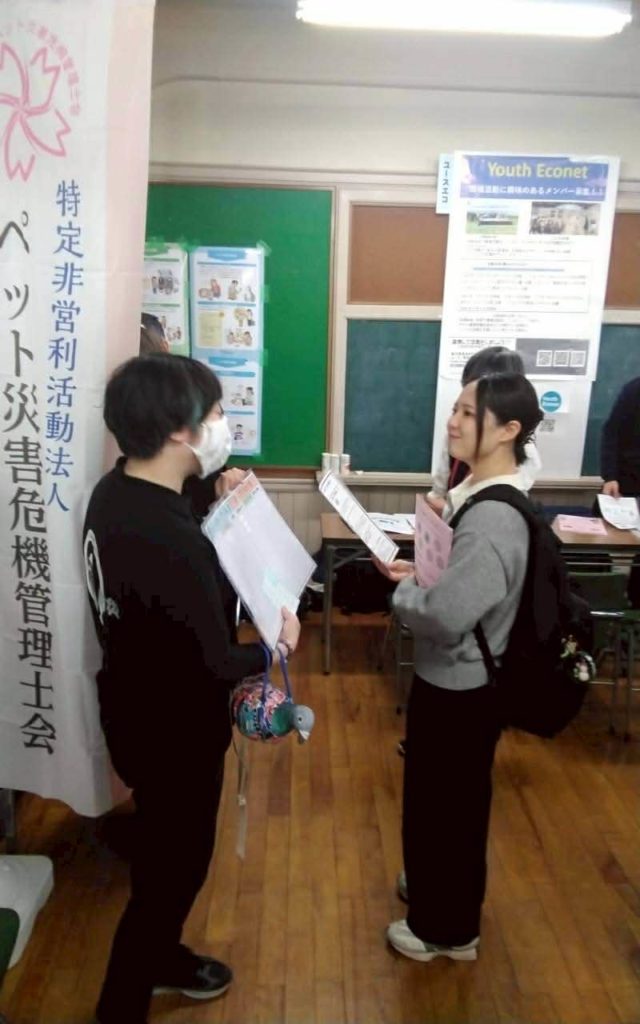 本会ブースでは、来場者の皆様に対し、災害時のペット同行避難の基本的な考え方や、平時からの備えの重要性についてご説明し、多くの方に関心を持っていただきました。